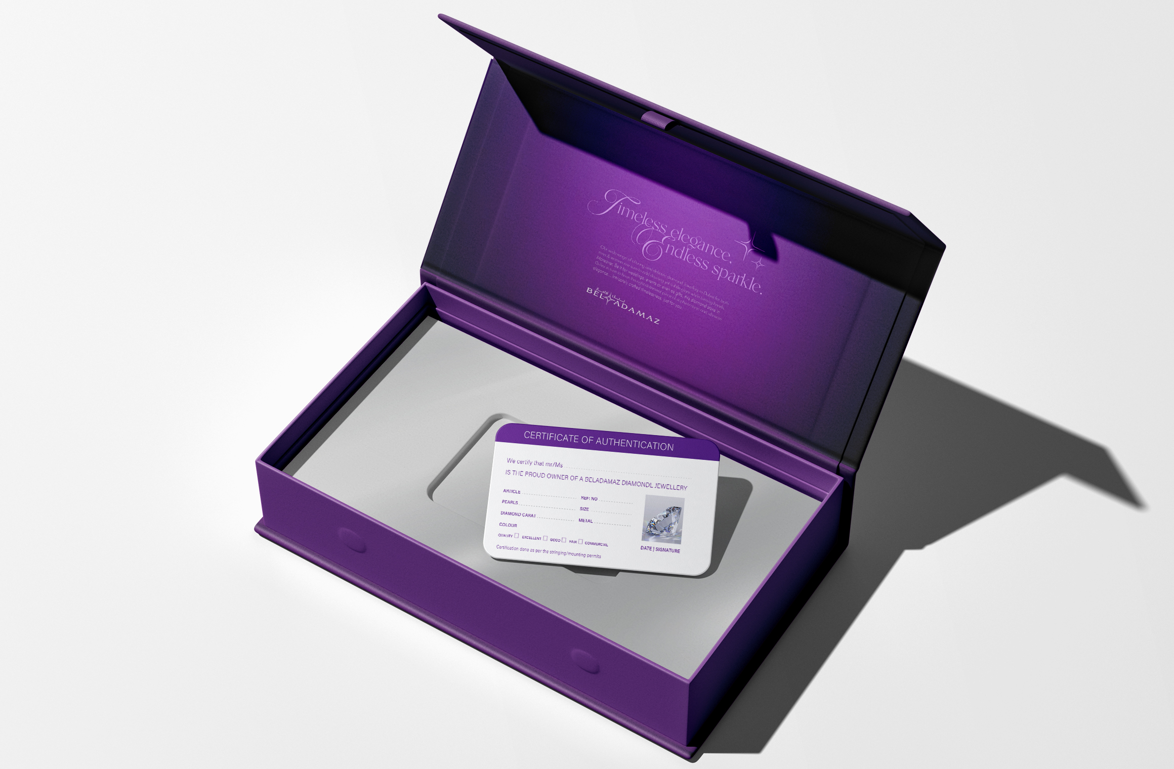 Beladamaz is a meticulously crafted logo inspired by the scintillation and brilliance of a diamond. Its delicate sparkle is accentuated by fine, curved, and gracefully graduated lines, reflecting the refinement of exquisite jewelry craftsmanship. Embodying the essence of illumination, the logo helps brands shine in a crowded market. With dynamic, sleek elements, it exudes both energy and sophistication while maintaining a timeless elegance. Its versatile design ensures seamless adaptation across various materials and applications.